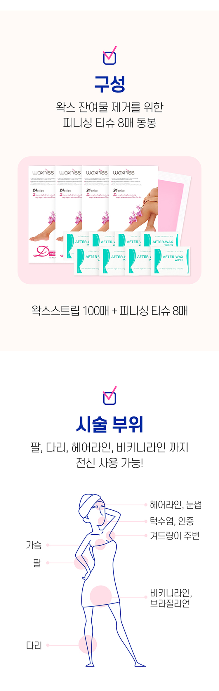 WaxKiss wax strips, 100 sheets, self-waxing hair removal patch, waxing strips, 100 sheets / 왁스키스 왁스스트립 100매 셀프왁싱 제모패치 왁싱스트립 , 100매