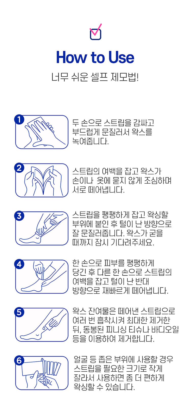 - How to use: Dissolve the strip by rubbing it with your hands or using a hair dryer, then separate it, attach it to the required area, and then remove it all at once. It can be recycled several times before it hardens, and any residue must be wiped with the included finishing tissue or removed with an oil such as body oil.