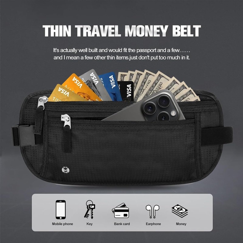 WAYAMY Soporte Delgado Para Pasaporte, RFID Waist Pack, RFID Pasaporte Funda, Bolsillos de viaje, Fundas de pasaporte, Carteras para Pasaporte RFID para proteger sus documentos y tarjetas bancarias