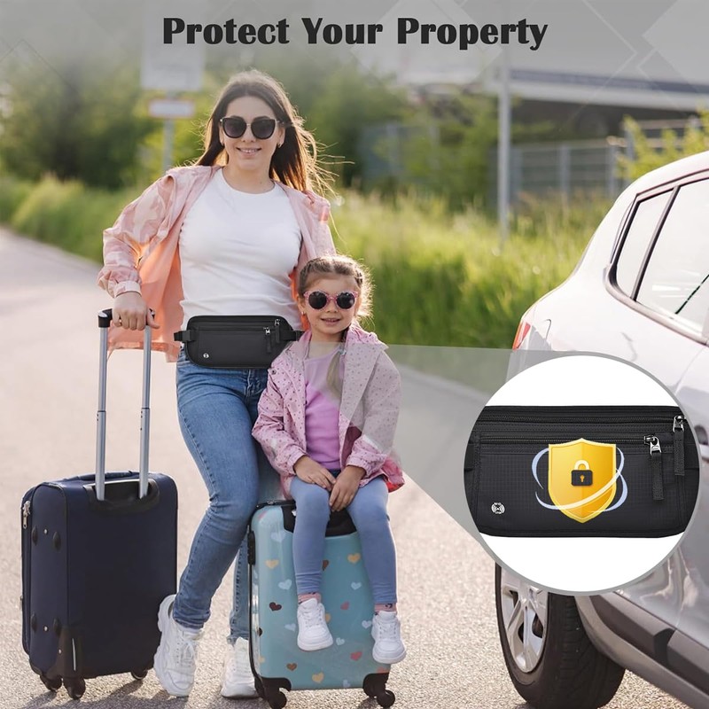- 【Diseño cuidadoso】 Esta riñonera de seguridad cremalleras suaves y costuras extra reforzadas.El diseño de malla transpirable en la parte posterior evita que te congestiones cuando viajas en verano.Es transpirable y absorbe el sudor para aliviar la fatiga de transporte.