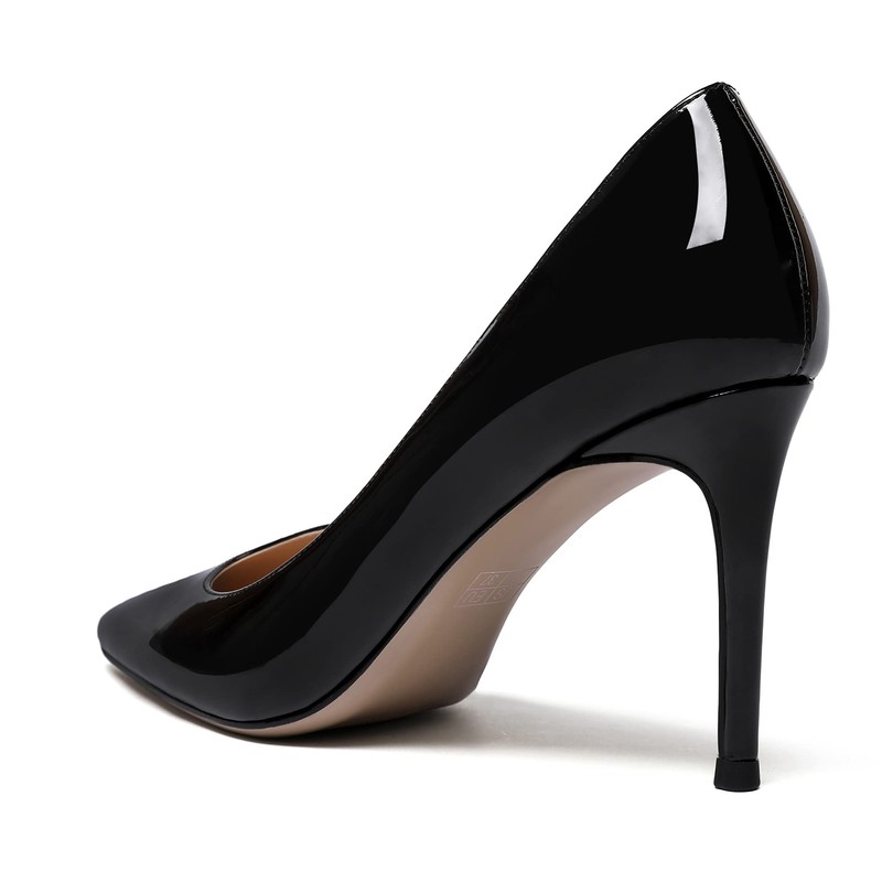 WAYDERNS Women's Black 3.5 Inch Patent Pointed Toe Stiletto High Heel Solid Slip On Pumps Shoes Size 9.5 - Zapatillas de Tacon