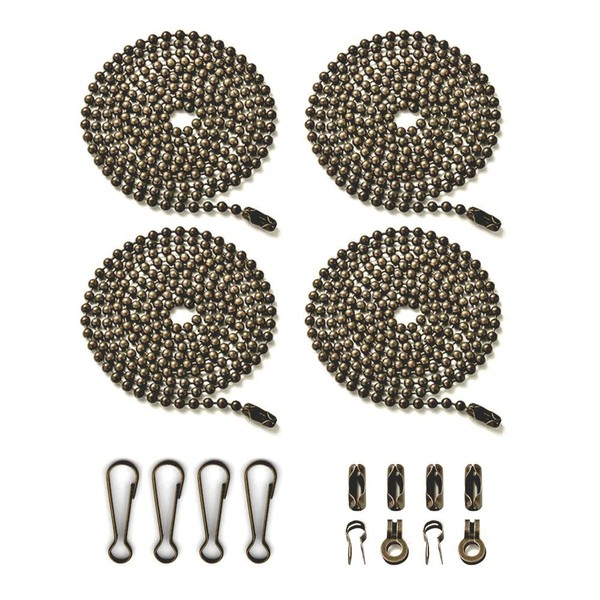 Wayilea Ceiling Fan Pulls Chain, 4 Pack Fan Extension Chain 90cm long, 4 PCS Hooks 8 PCS Connectors for Light/Lamp Extender Replacement (3.2mm Beaded Oil Rubbed Bronze Chain)