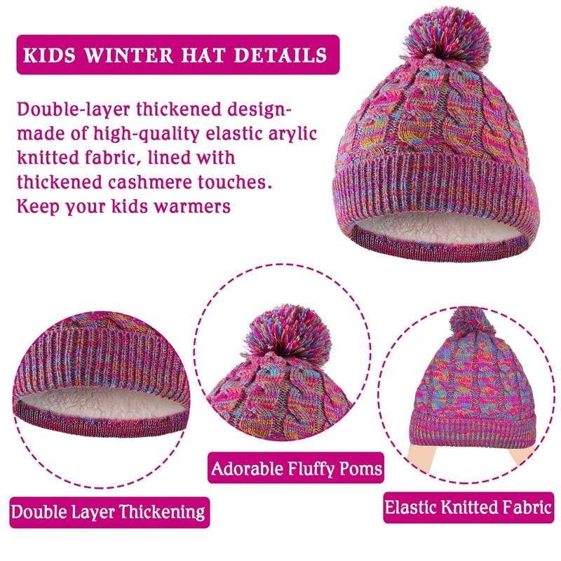 - Size – Our hat, scarf and gloves have good elasticity. You can easily stretch them to fit children's hands, neck and hat. They are suitable for children aged 3 to 10 years. Knitted hat size: head circumference: 18.1 inches x 21.3 inches (46 cm ~ 54 cm), please measure the children's head circumference first.