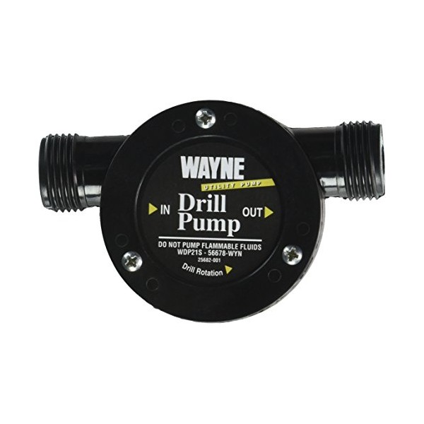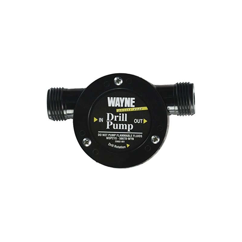 A WAYNE Drill Pump is a drill powered water pump that connects to standard garden hoses to pump water easily. Typical applications include clogged sinks, overflowed dishwashers and washing machines.