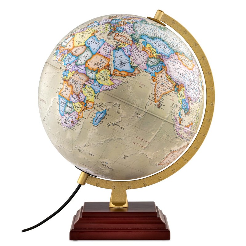- Up-to-Date Globe: Our 12” Atlantic II Illuminated world globe displays ocean floor topography, multiple political boundaries, and named places. The attention to detail in the crafting of this decorative item ensures its practicality and durability