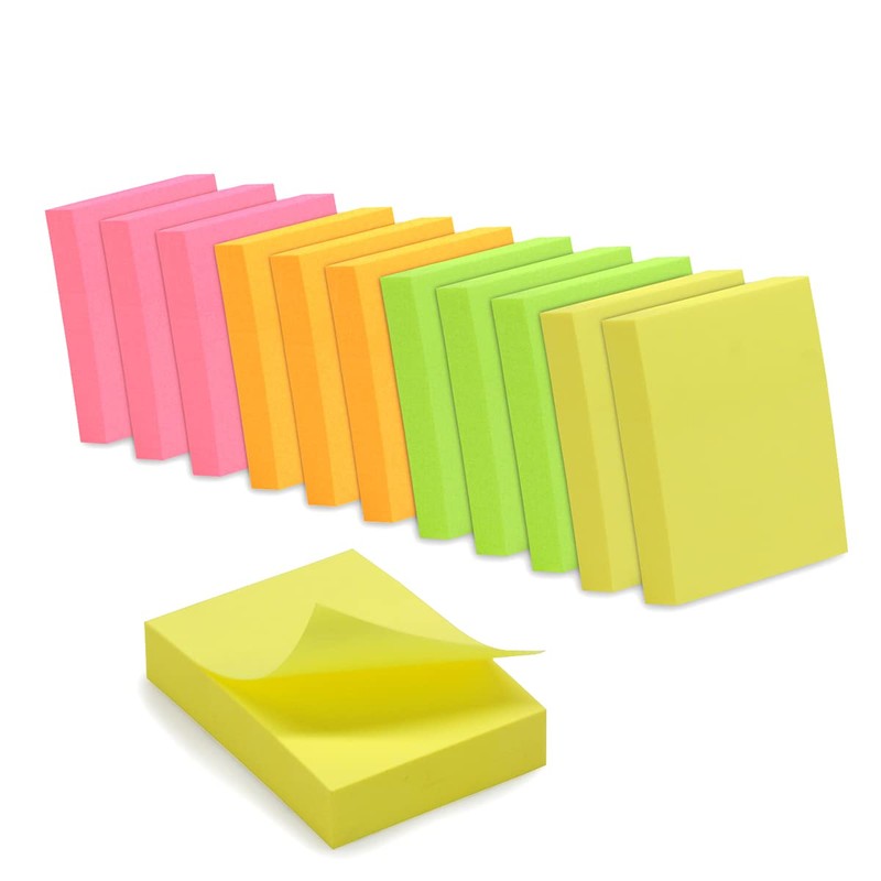 - ✔️ Pack of 12 mini pads of 100 sheets each size 37.5 x 50 mm, a small format for writing down folders, books or corrections. Ideal for small reminders on the edge of the screen or on the desk.