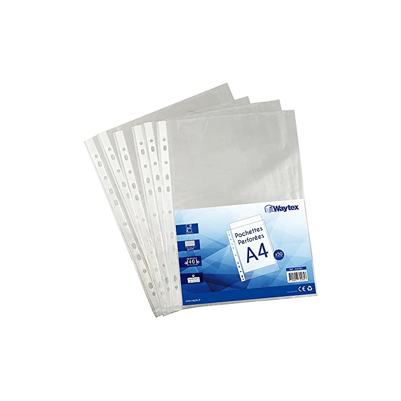WAYTEX 50 x A4 Clear Grained Document Wallets 40 Micron