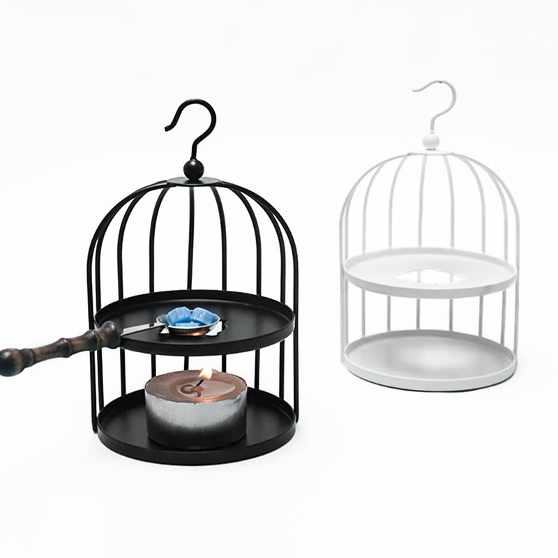 - CREATIVE DESIGN: Crafted of metal frame to greatly enhance its stability and durability. Designed like a semi-open bird cage shape to create an attractive appearance. Top hook helps move anywhere to better meet your various needs. Middle hollow tray to conveniently support melting spoon whilst bottom tray to stably hold sealing wax candle (NOT INCLUDED). An extra portable spoon allows to place wax beads for easy melting, wooden handle provides you excellent holding without wrist fatigue