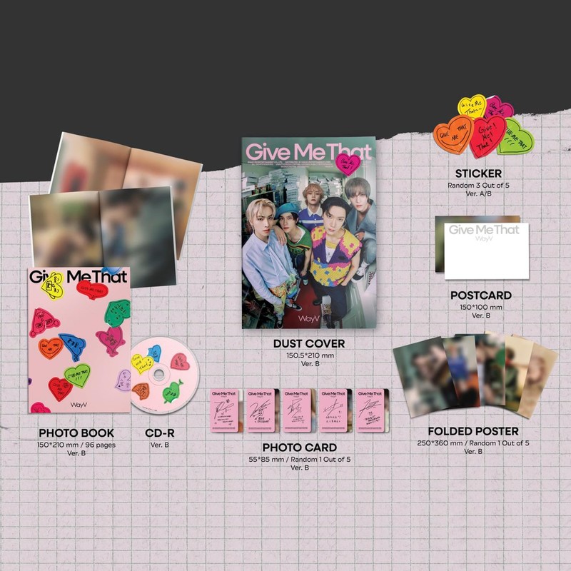 WayV - Mini 5th Album [Give Me That] (A Ver) Dust Cover + Photo Book + CD-R + Photo Card + Folded Poster + Postcard + Sticker + 3 Extra Photocards