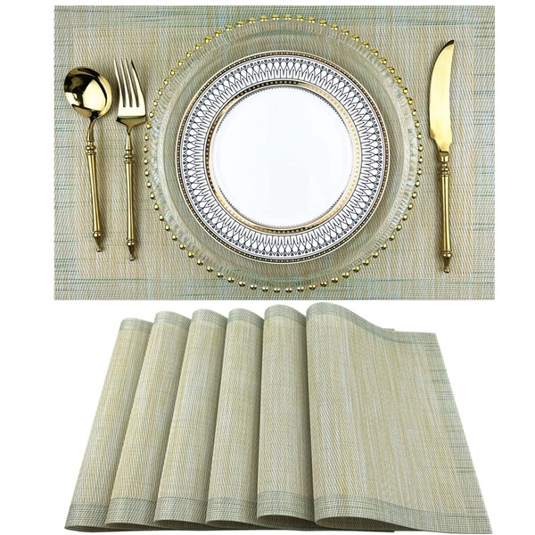 WAZAIGUR Mixed Texture Design Tight Vinyl Woven Easy to Clean Placemats Dining Table Mats (Mottled Green, 6)