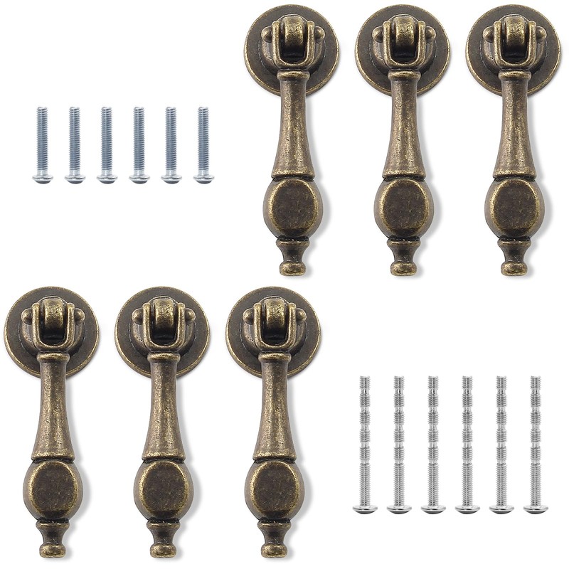 - 【What You Get】 6 x Vintage Chest Knobs, 6 x Mounting Screws, 6 x Shearable Screws. Retro style, unique pattern, suitable for a variety of styles of furniture.