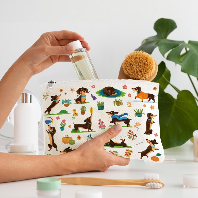 - Practical Combination – This adorable set includes a canvas tote and matching makeup bag, suitable for carrying snacks, books, or daily beauty items. A cute and useful pair for moms, girlfriends, or dachshund-loving ladies who like to stay stylish and prepared.