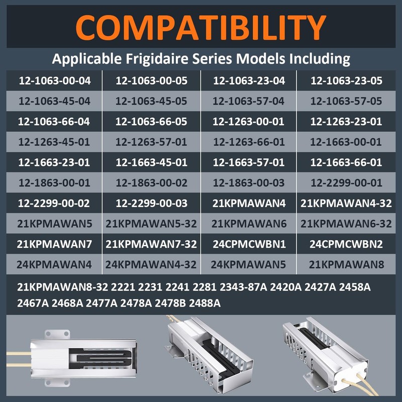 GE Replacement WB13K21 Oven Range Flat Igniter. Fits specific model number. To confirm part compatibility, please message us directly so we can help you.