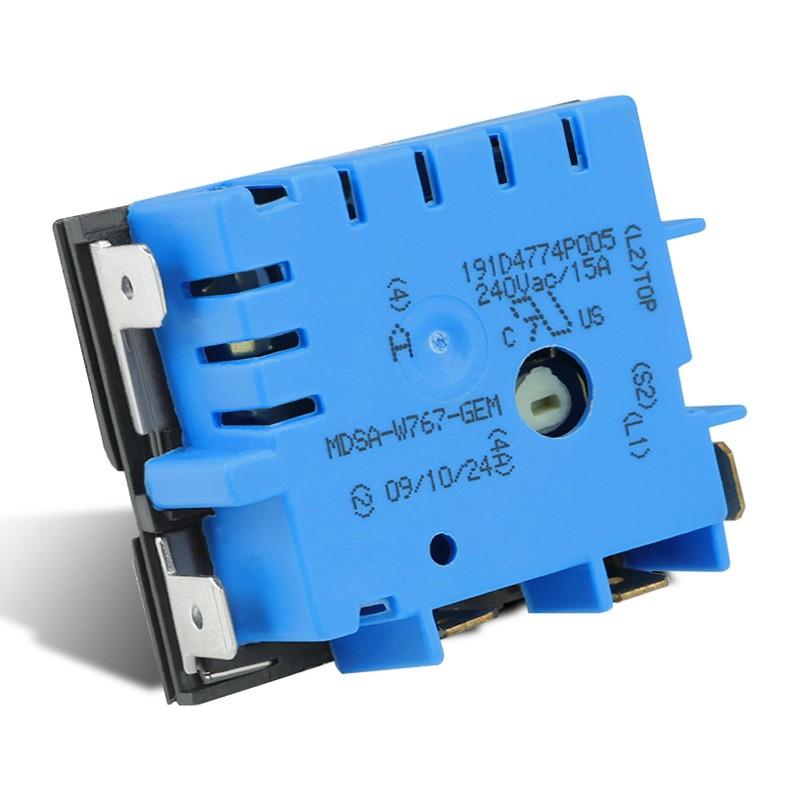 - [ Premium Construction ] 240V, 15 Amps, low voltage input, 0.769 axis size; Wb24x25013 infinite control switch manufactured with premium materials for durability and exact fit, with no rust on the metal surface and precise dimensions.