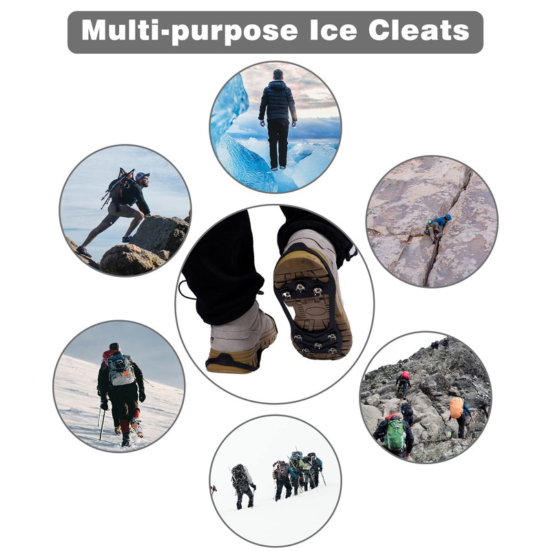 - Easy to Use: You just need to buckle the front end of the crampons on the toe of the shoe and place the back on the heel, then adjust it appropriately.After use, pull it off. Fold it and put it in your carry-on backpack