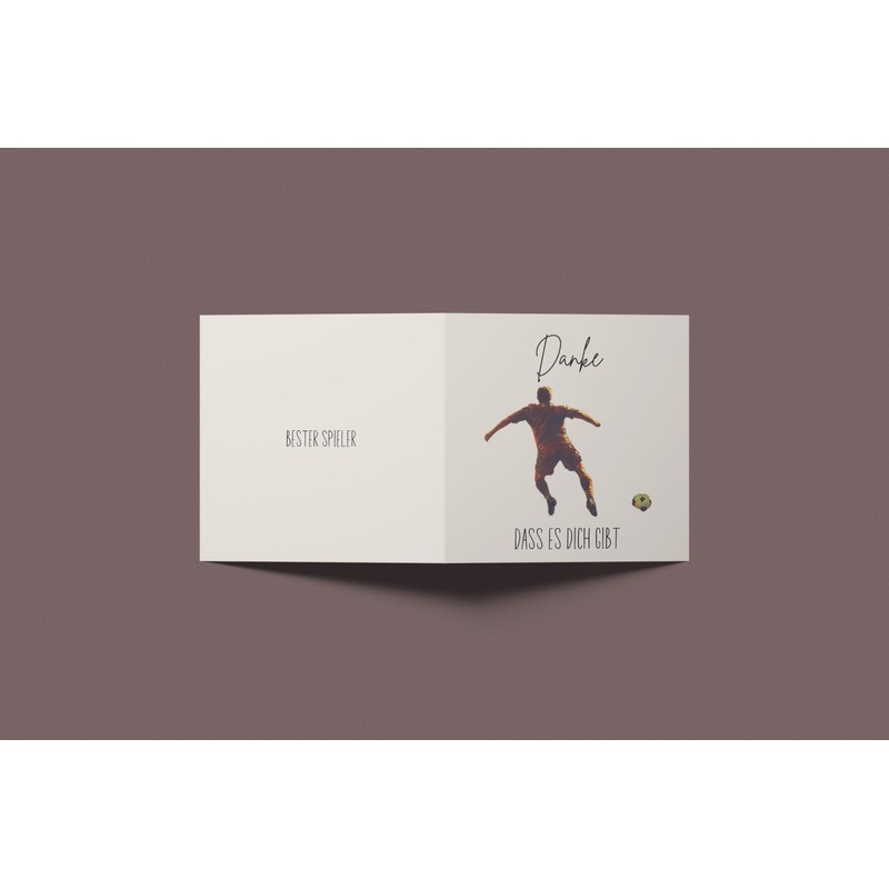- EMOTIONAL FOOTBALL DESIGN The birthday card "Danke, dass es dich gibt" features a dynamic football player, a striker combined with an appreciative message.