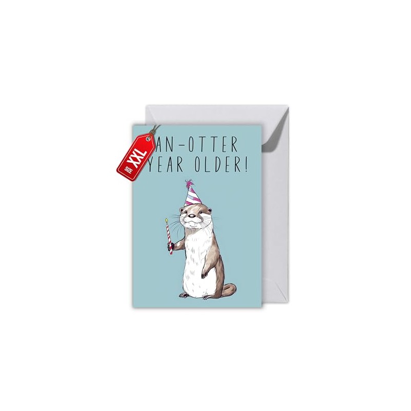 WBdesignz Birthday Card with Envelope - Otter Birthday Card An-Otter Year Older! Birthday Card (XXL DIN A4)
