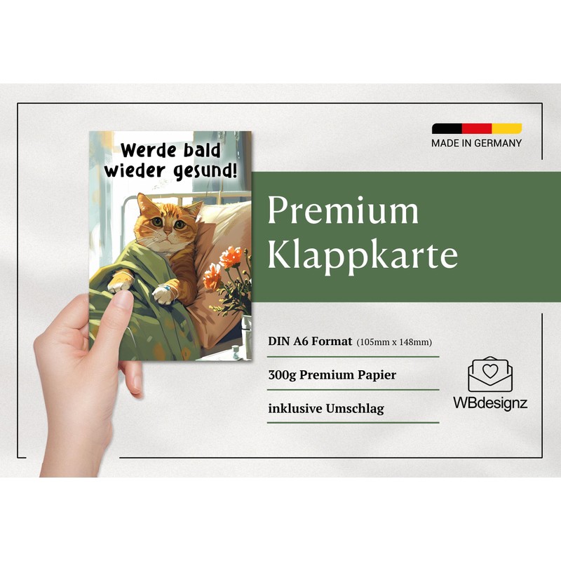 WBdesignz Recovery Card with Envelope - Heartfelt Wish Wish Card "Become Healthy Soon" Friendly Good Recovery Card Health Recovery (DIN A6)