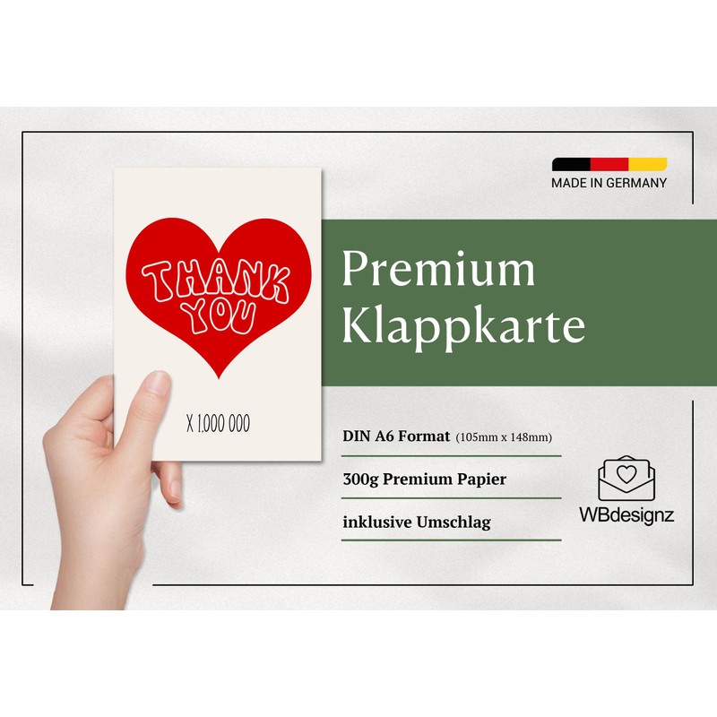 WBdesignz Thank You Card "Thank You x 1,000,000" - Loving Greeting Card in Retro Design - Thank You For Girlfriends, Partner, Family & Colleagues - DIN A6 - 300 g/m² Premium Paper - With Envelope