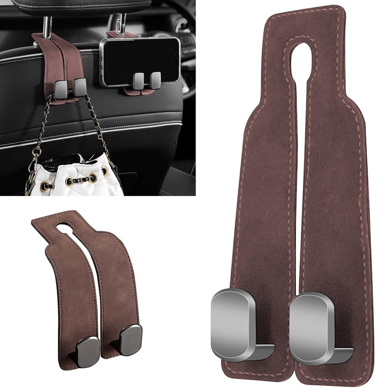 - 4. Our car headrest hooks are made of resilient leather that is wear-resistant and long-lasting. The metal double hooks are built to withstand heavier loads, ensuring that you'll have even more space to store your things.