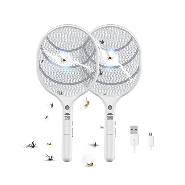 WBM Smart Electric Fly Swatter Racket, Rechargeable Bug Zapper, Medium-2PK, (6405E-2PCS)