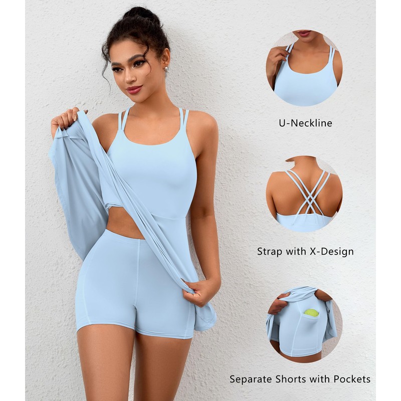 - SEPARATE SHORTS: This Golf Athletic Dress with cross straps comes with separate inner shorts which have two pockets, ideal for storing small items like tennis balls, your phone, card. The inner shorts to keep you covered through lunges, running, box jumps and other sports activities.