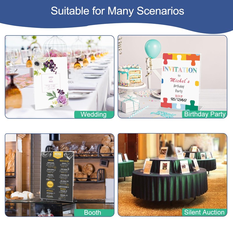 • ★【Widely Use Sign Holder】: 8 x 10 acrylic sign holder perfect for announcements, photos, images, brochures. It can be used by office, home, restaurants, trade shows, any other location where you want to display your signs.