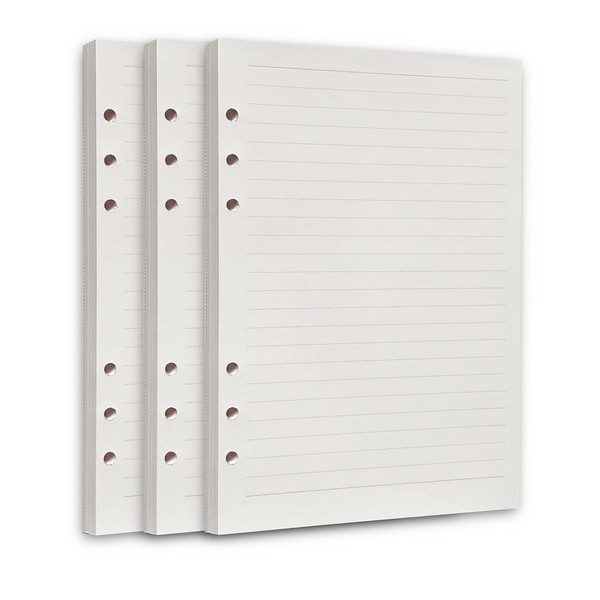 WBway Notebook Refill, A5 Size, Horizontal Ruled (Set of 3), 135 Sheets, 6 Holes, System Notebook, Notepad Refill, 6 Holes, Filling, A5 (Horizontal Rule)