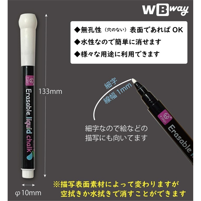 • Works on non-porous surfaces Blackboard, Blackboard, Glass, Metal, Waterproof Wood, etc..