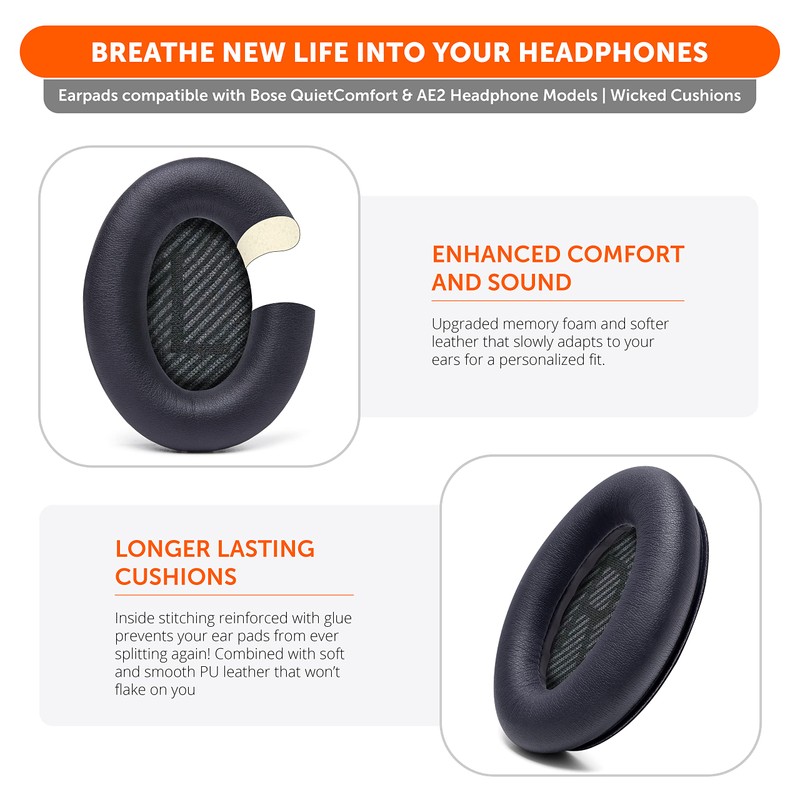 - Fits Like A Glove: These ear pads, made by Wicked Cushions, fit the following models of Bose Headphones perfectly: QuietComfort 35 & 35ii / Quiet Comfort 2 / Qc25 / Qc15 / Ae2 / Ae2i / Ae2w / SoundTrue / SoundLink