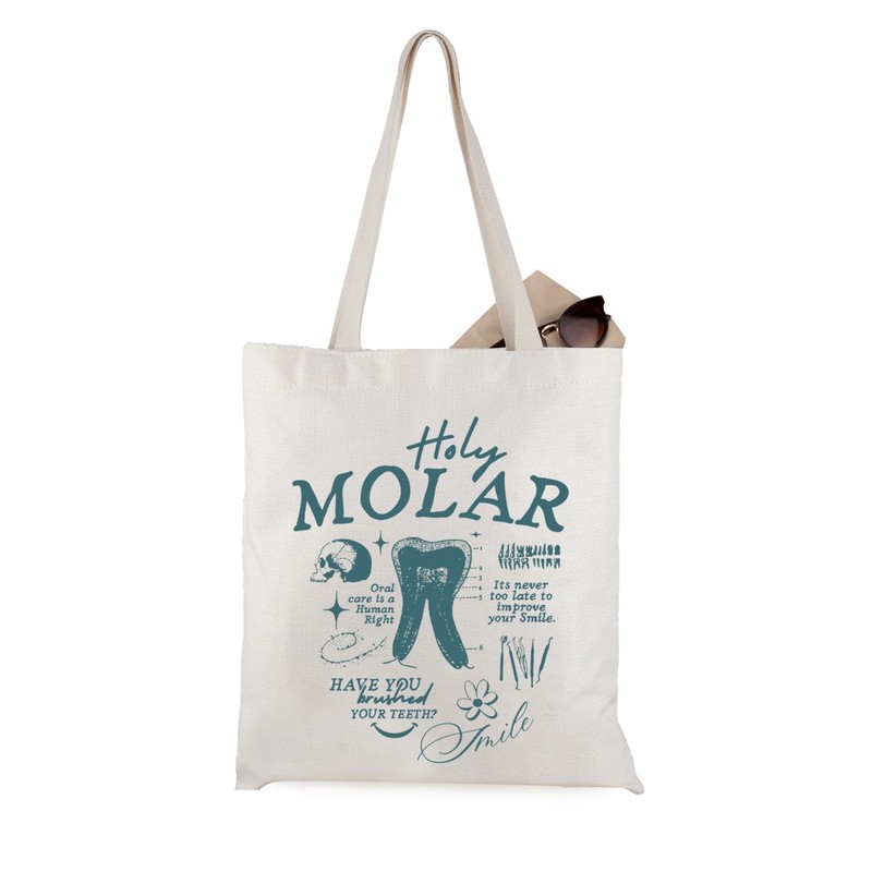 WCGXKO Holy Molar Tote Bag Dentist Graduation Gift Hygiene Queen Gift for Future Dentist (Holy Molar Tote CA)