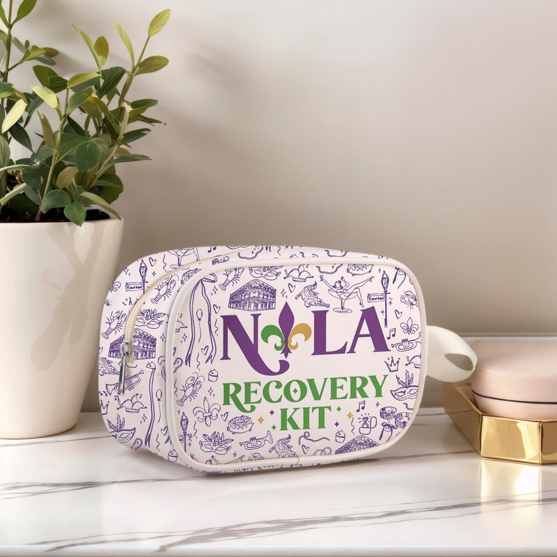 WCGXKO Nola Recover Kit Clear Makeup Bag Mardi Gras Bachelorette Gift NOLA Bachelorette Gift Fleur De Lis Gift (Nola Recovery Cbag)