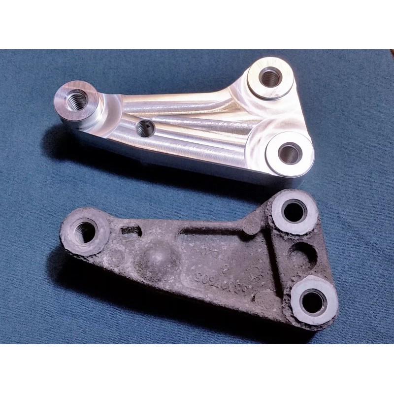 This is a Heavy Duty replacement of the stock Jeep alternator bracket for 2.5 dodge Dakota in the late 90's to early 2000's. This is made from billet 6061 aircraft aluminum making it much stronger then the cheap brittle cast factory part. Also I included a new grade 8 bolt for the rear support bracket and a new grade 8 bolt that connects this bracket to the alternator. This is a direct replacement for the factory part number .... 53007605 and 53007604