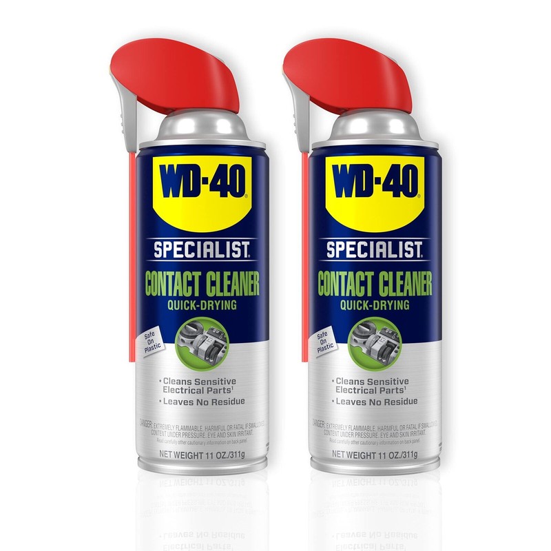 WD-40 SPECIALIST ELECTRICAL CONTACT CLEANER SPRAY, featuring patented Smart Straw technology, blasts away oil, dirt, flux residue and condensation from sensitive electronics and electrical equipment with pinpoint precision. It dries quickly, leaves no residue and removes more soil than leading competitors, making it the best at cleaning electrical contacts. Safe to use and 50-state VOC compliant, it's ideal for use on printed circuit boards, controls, switches, precision instruments and electric panels.