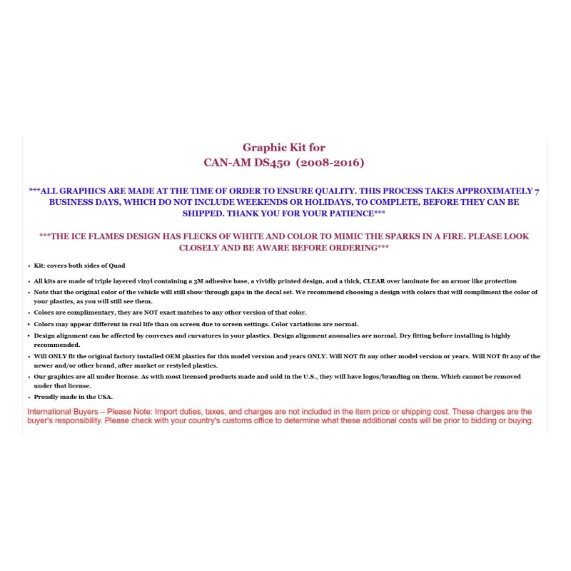 wd ATV Graphic Quad Stickers Decals For Can-Am DS450 EFI 2008-2016 ICE U