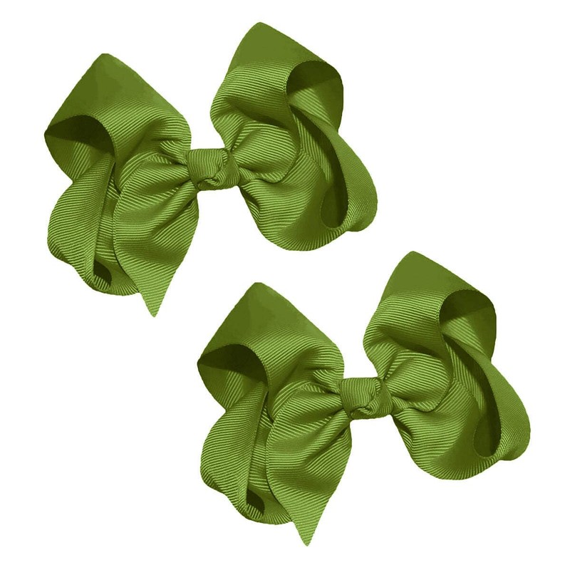 WD2U Girls Set of Two 4" Solid Grosgrain Pigtail Hair Bows Alligator Clips Kiwi Green