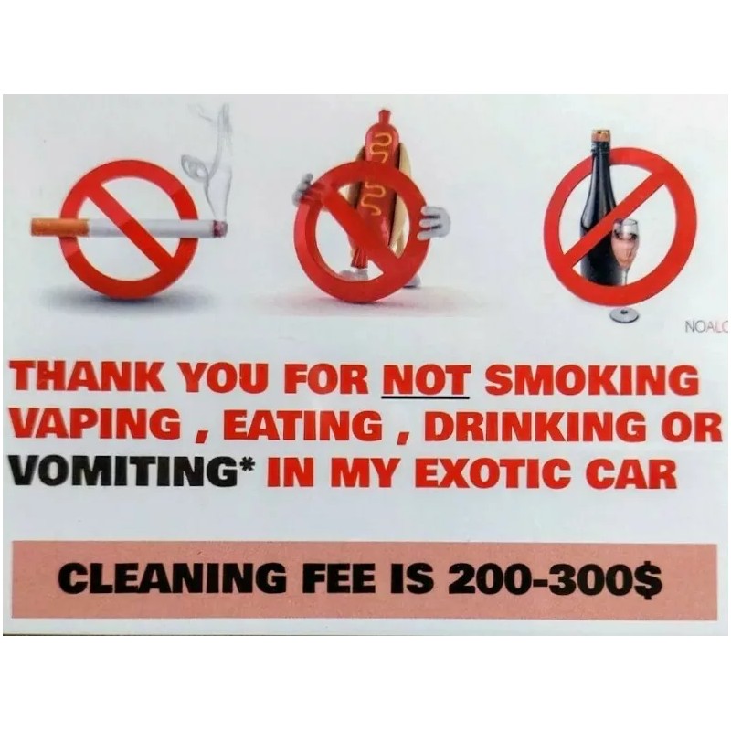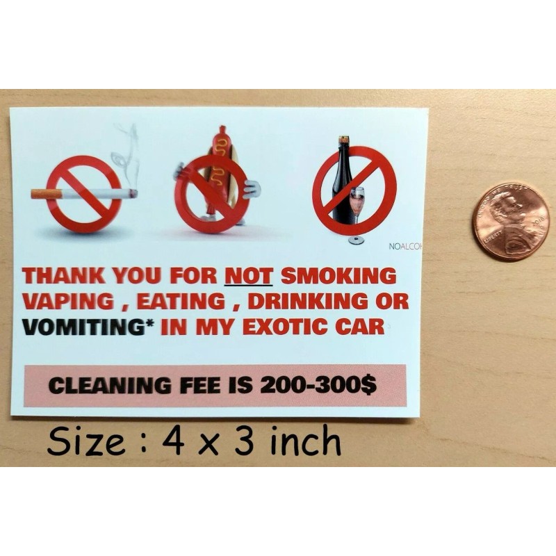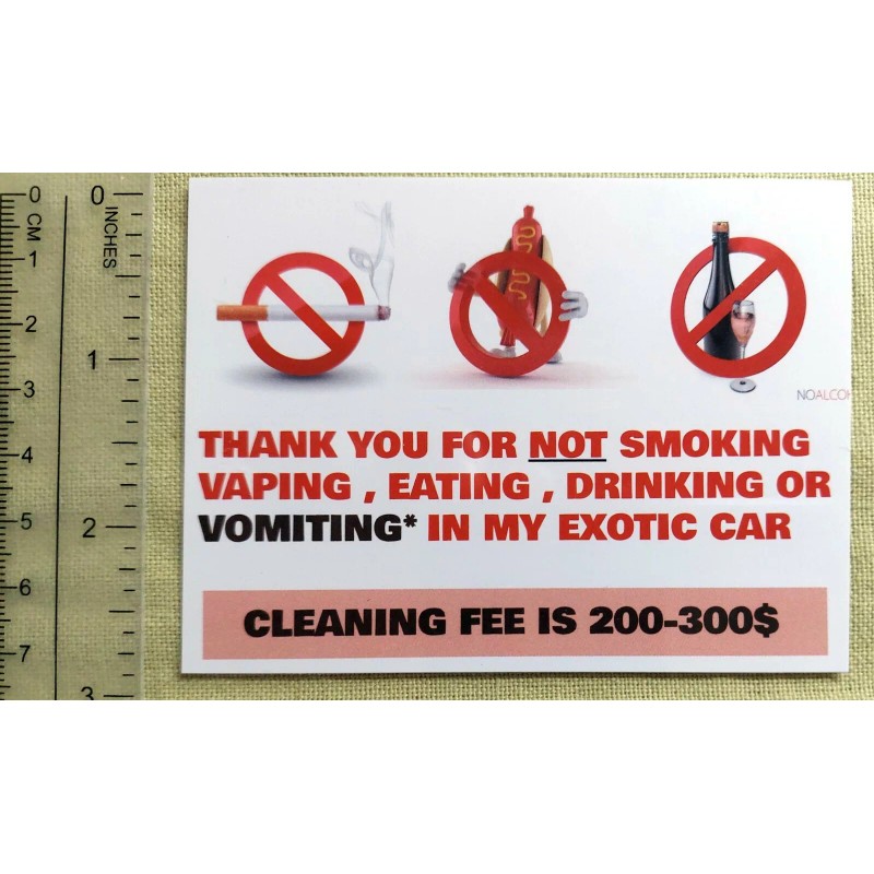 WDC No smoking No vaping no eating no drinking or vomiting in car (4 x stickers)