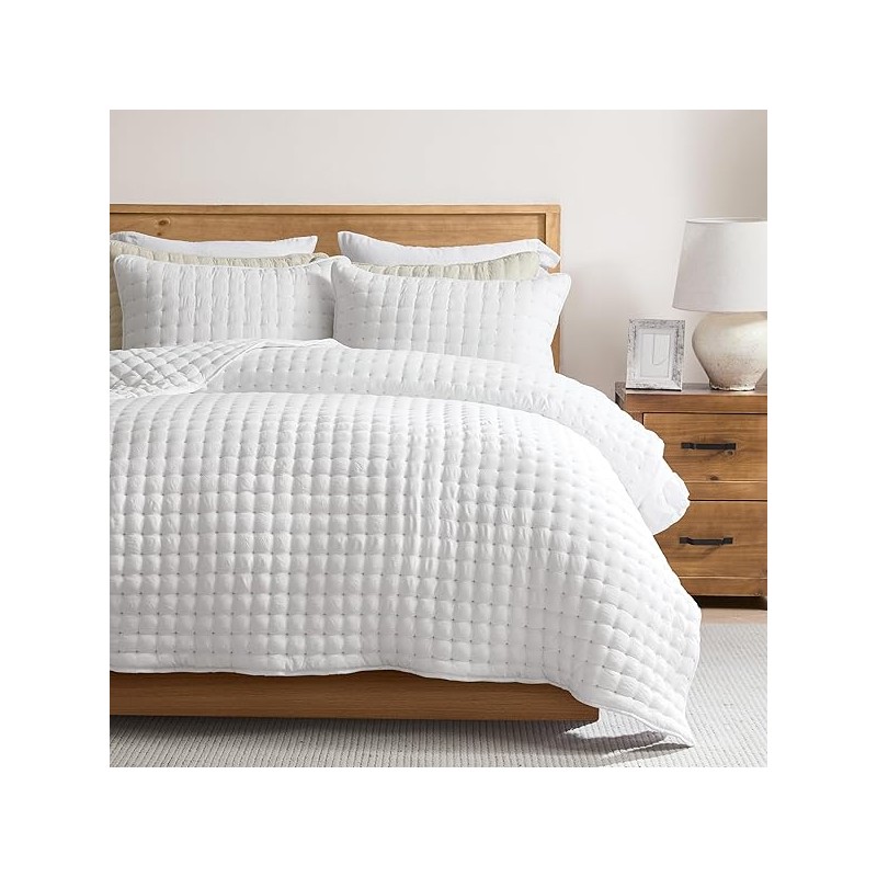 WDCOZY White Queen Size Quilt Bedding Sets with Pillow Shams, Lightweight Soft Bedspread Coverlet, Quilted Blanket Thin Comforter Bed Cover, All Season Summer Spring, 3 Pieces, 90x90 inches