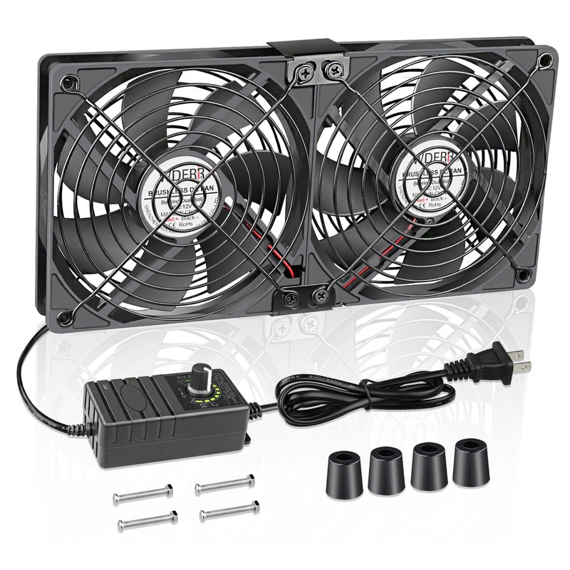 WDERAIR Server Cooling 2 x 120mm Big Airflow Computer Fan 110V-240V with AC Variable Speed Controller for Chassis PC Cabinets Air Circulation Window Ventilation