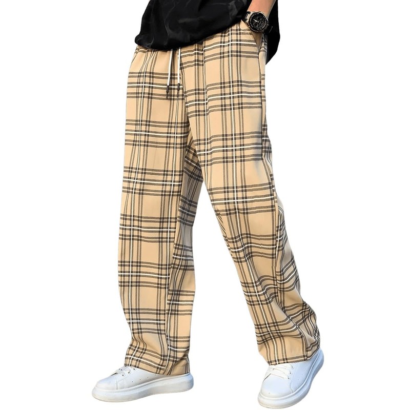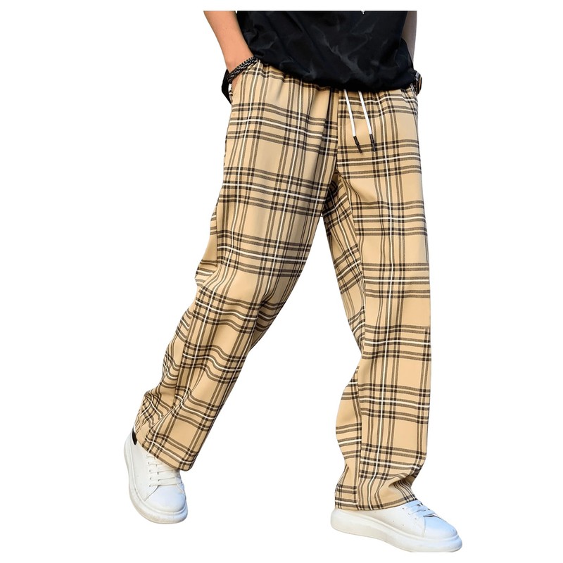 WDIRARA Men's Stretch Waist Plaid Pants Casual Workout Active Bottom Khaki M