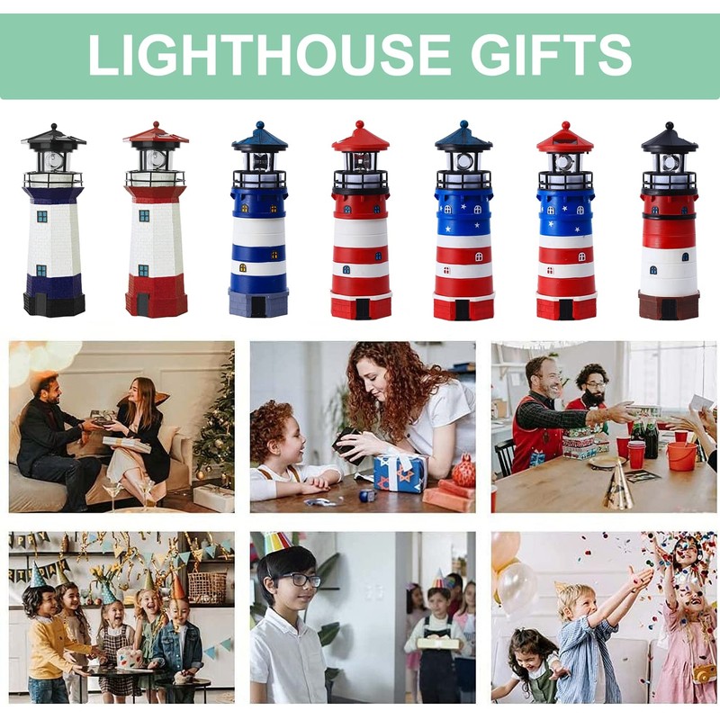 WDLFCGC Solar Powered Lighthouse - 12" Tall Solar Lighthouse with Rotating Beacon, 360 Degree Rotating Lighthouse Decoration, Best Lighthouse Gifts for Children(Round Black Top)