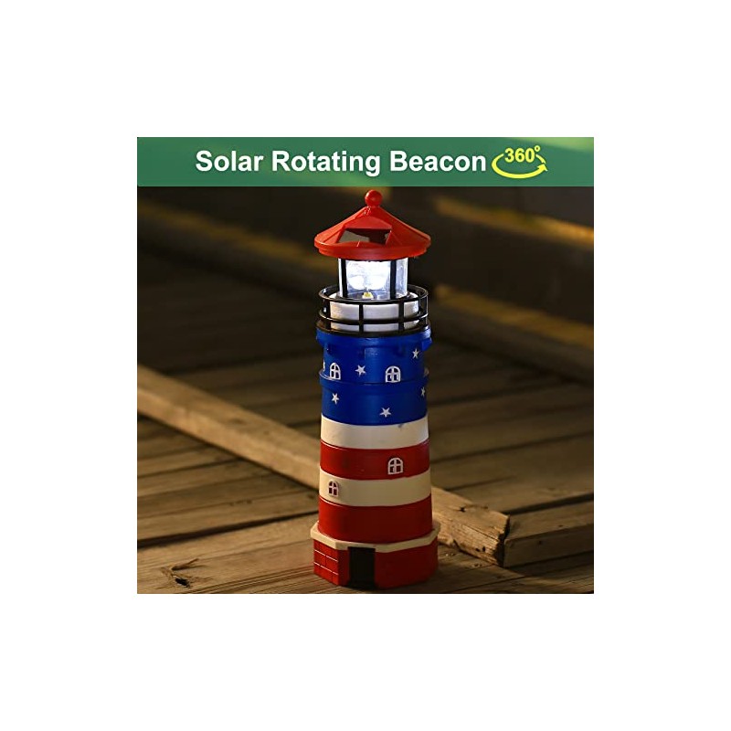 WDLFCGC Solar Powered Lighthouse - 12" Tall Solar Lighthouse with Rotating Beacon, 360 Degree Rotating Lighthouse Decoration, Best Lighthouse Gifts for Children(US Flag Red Top)
