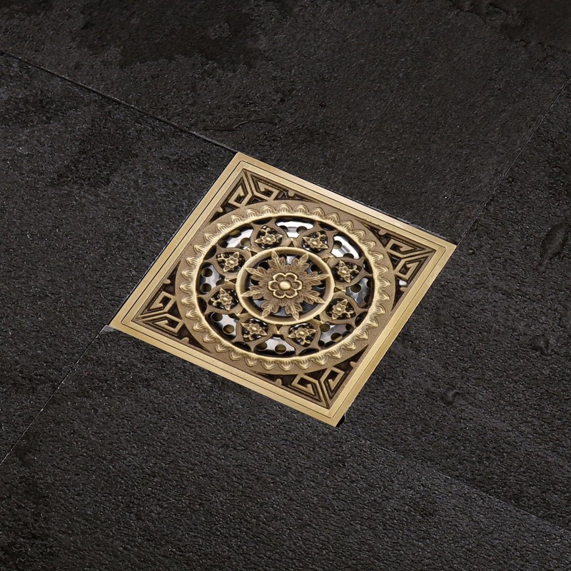 The square drain cover has a unique pattern to show your elegant taste; Made of brass, long service life, easy to clean, easy to install; Suitable for many scenarios, can be used for bathroom, balcony and more.