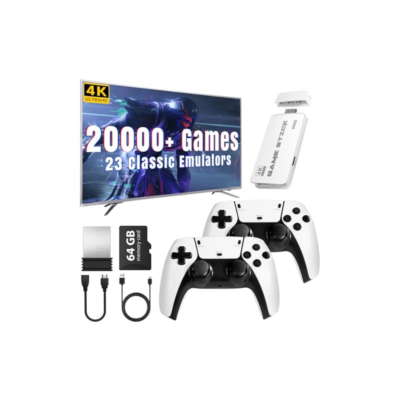 Wireless Retro Game Console,Retro Game Stick,23 Classic Emulators 20000+ Games,4k Hdmi Output,and 2.4GHz Wireless Controller