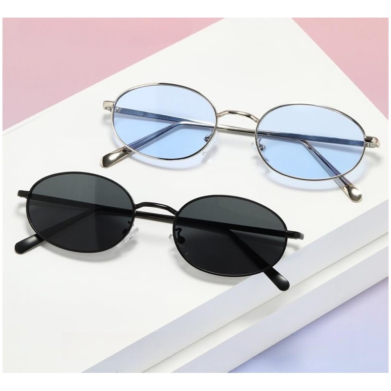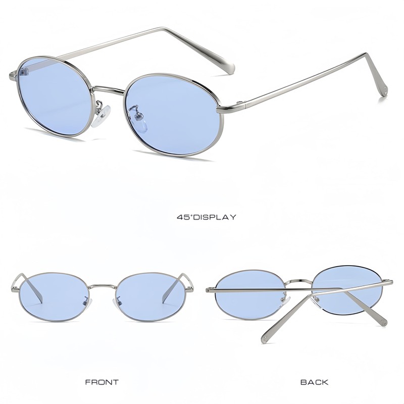 WDZAYXC Retro Oval Sunglasses for Men and Women, silver/blue