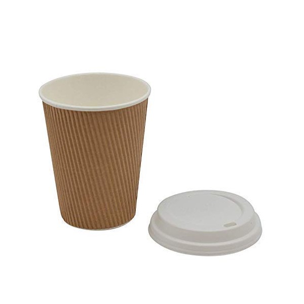 We Can Source It Ltd – 12oz. Brown Kraft Ripple Paper Cups with Lids – Eco-Friendly 100% Compostable Recyclable – Great for Tea, Coffee, Hot Drinks Takeaway – 100 Pack