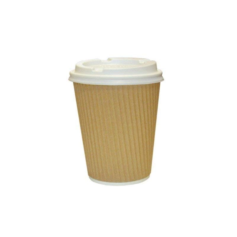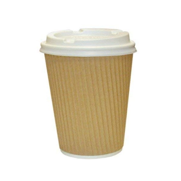 We Can Source It Ltd – 8oz. Kraft Ripple Paper Cups with Lids - Eco-Friendly Drinkware 100% Compostable Recyclable – Great for Tea, Coffee, Hot Drinks - 500-Pack