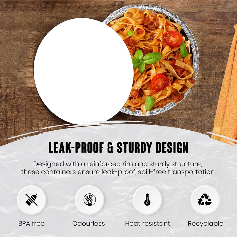 We Can Source It Ltd Aluminium Round Foil Food Container No 12 Take Away Box & Lids - 7inch Pack of 25 Containers & Lids