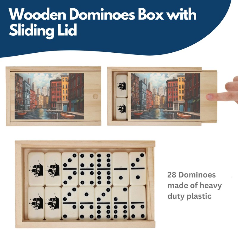 - PERSONALIZED PERFECTION: Make every game night special with our custom double 6 domino set with a wooden case. Personalize with names, dates, or heartfelt messages to create a truly unique and treasured gift! The dominoes measures approximately 2 x 1 x 3/8 in., and the case measures 8 x 5 x 2 in. The natural wooden case is equipped with a wood sliding lid. Includes 28 dominoes.