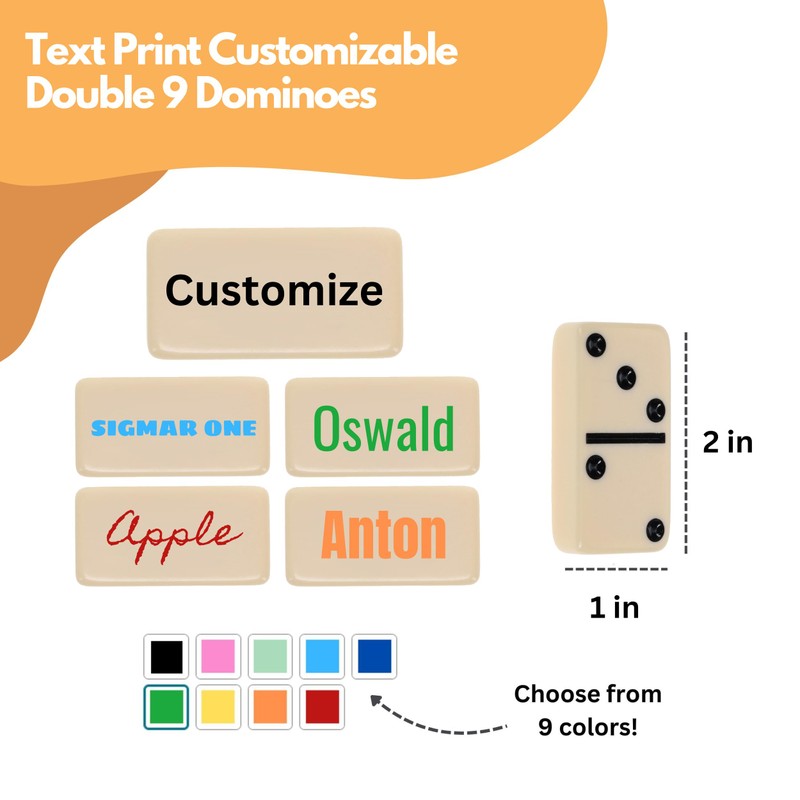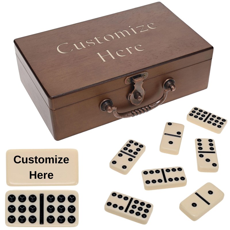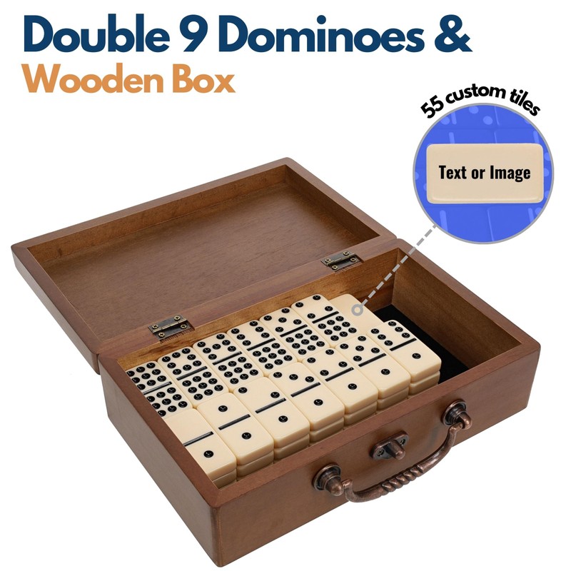 - PERSONALIZED PERFECTION: Make every game night special with our custom double 9 domino set with a wooden treasure box. Personalize with names, dates, or heartfelt messages to create a truly unique and treasured gift! Customize your set to perfection with a wide range of font styles, print colors, and images. Let your imagination run wild and create a truly one-of-a-kind piece!